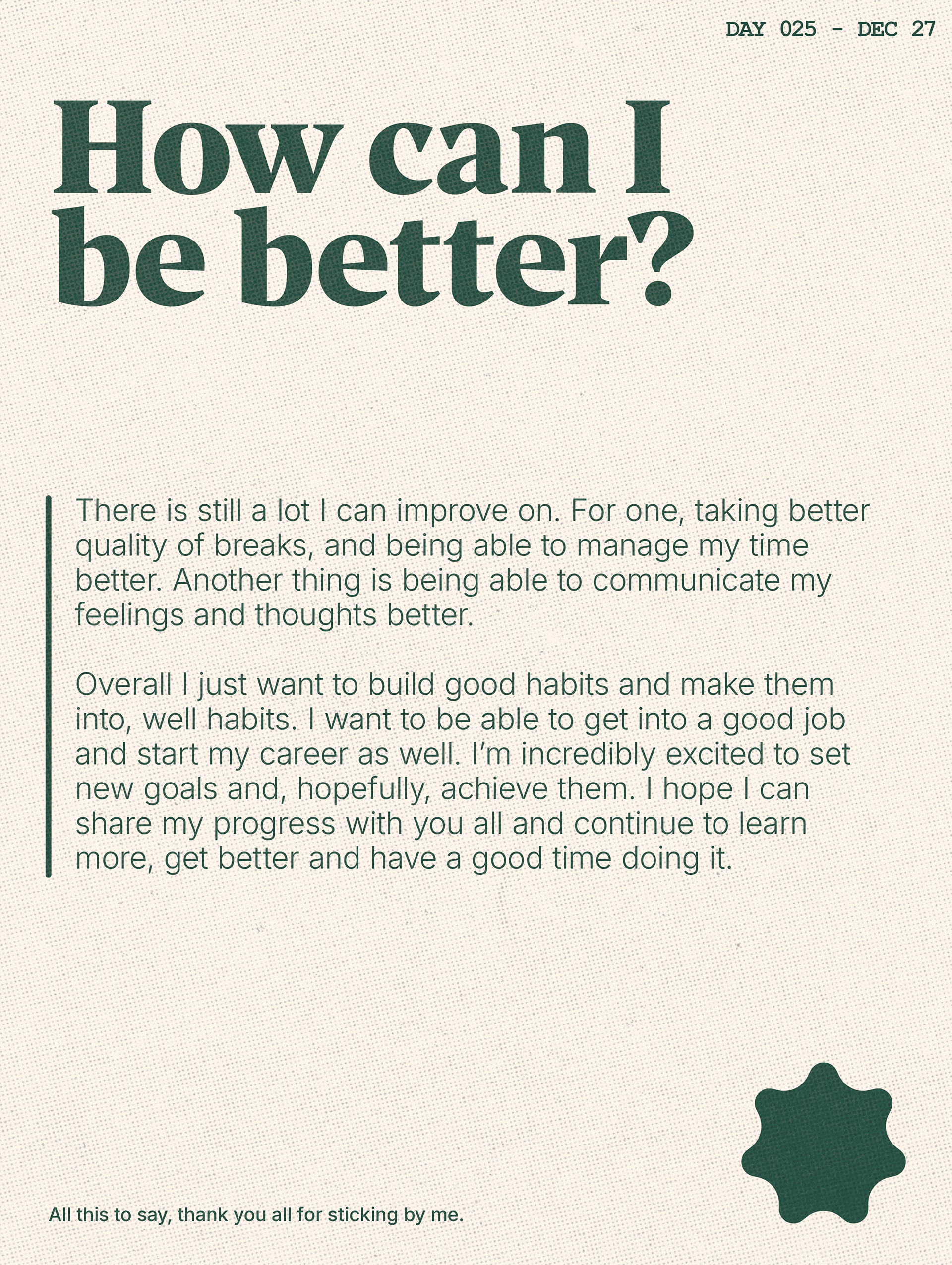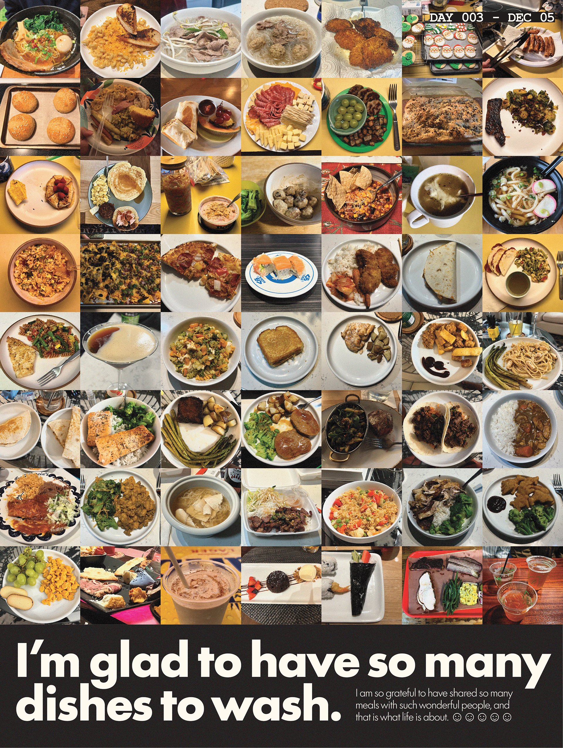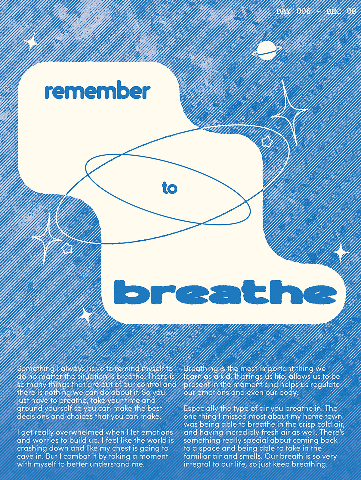 During the month of December, I took on the challenge to create one poster everyday for as long as I could. I found that creating an interesting poster that relayed a message was a huge task. I ended up spending between 2-4 hours per poster, and often it was difficult to keep up with it and my other projects. Though I don't think I will continue this challenge, it was a great exploration into stepping out of my comfort zone, and reigniting my creativity with art and design.